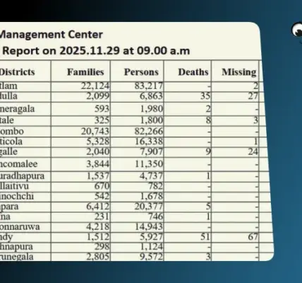 Uncategorized Update: දැනට මරණ 123 – අතුරුදන් 130 දිස්ත්රික්ක අනුව බෙදී ගිය අයුරු MoneyHeist November 29, 2025