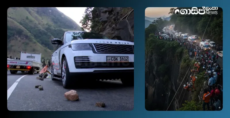 රේන්ජ් රෝවර් වර්ගයේ මෙම ජීප් රථය බස් රථයට ප්රතිවිරුද්ධ දෙසින් පැමිණ ඇති අතර අධික වේගයෙන් ආ බස් රථය